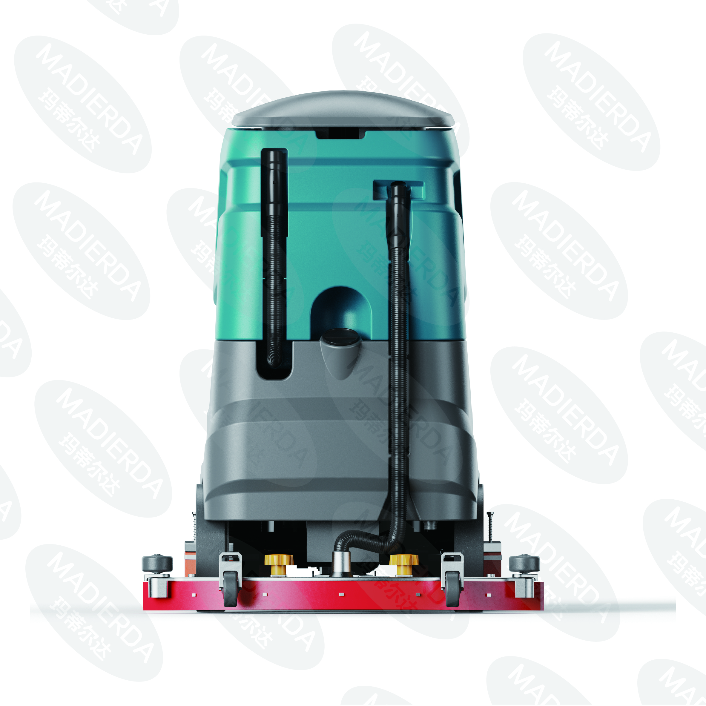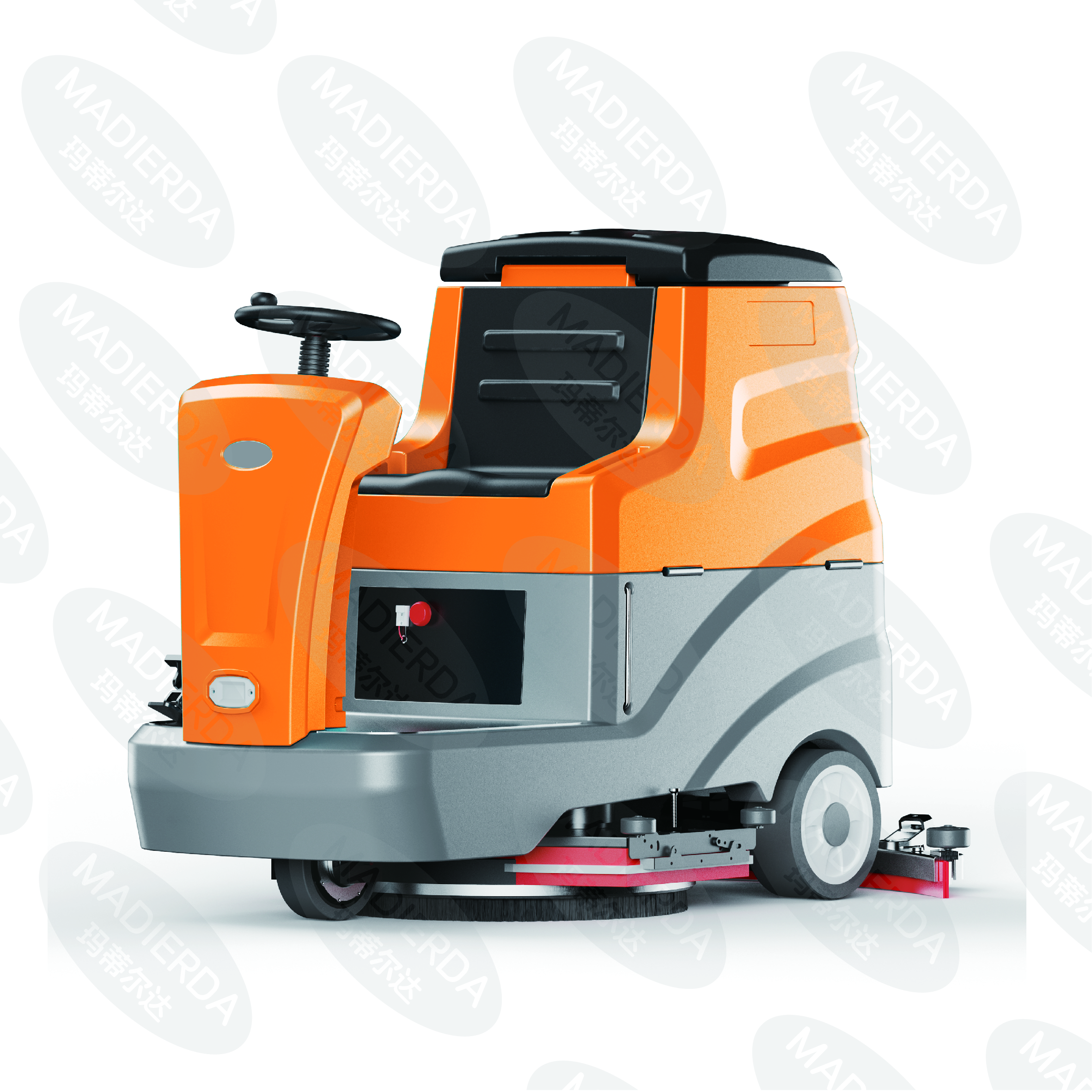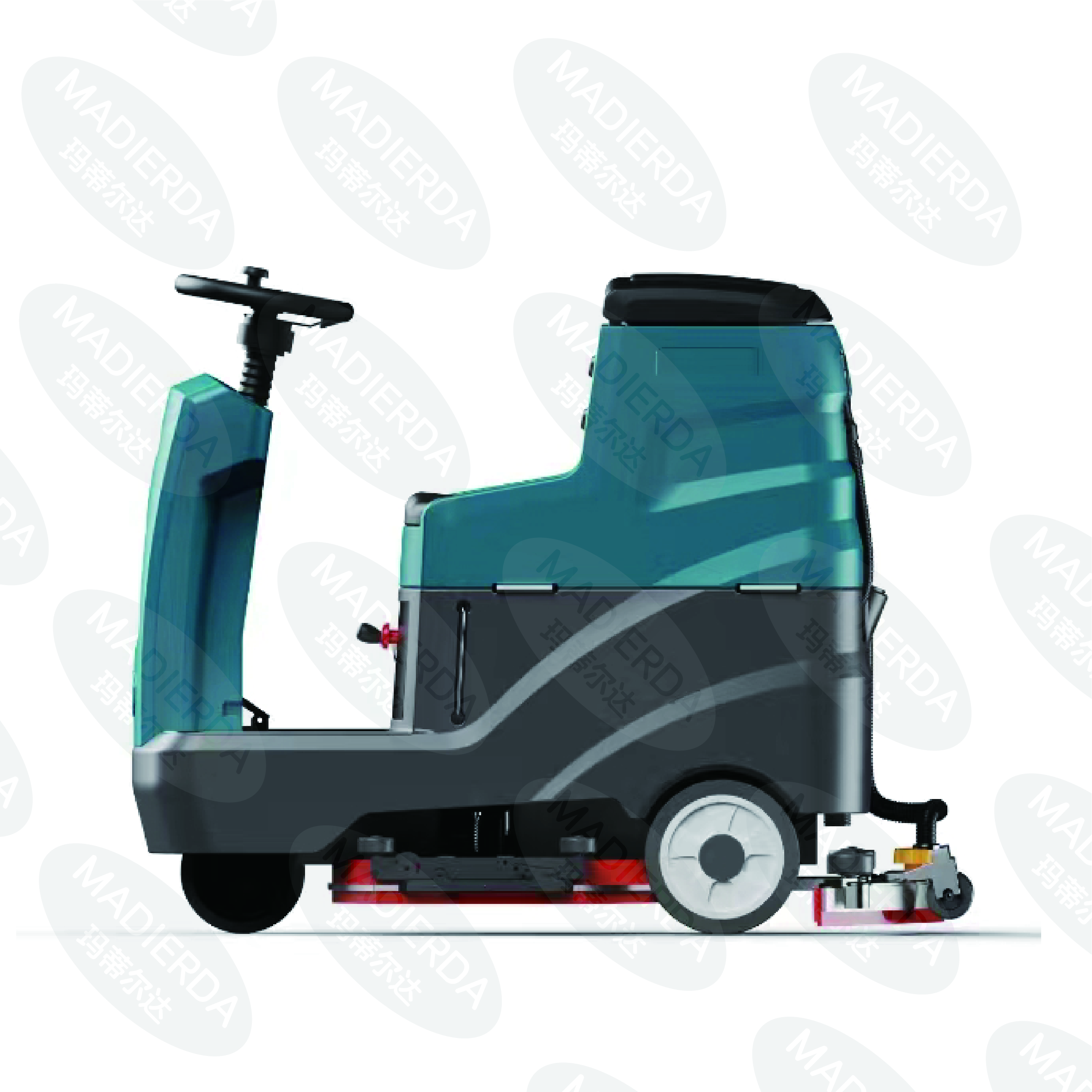 2. High-Pressure Water Spray: To improve the cleaning performance, our scrubber is equipped with a high-pressure water spray system. The water spray helps to loosen and remove tough stains and dirt from the floor surface. The water pressure can be adjusted according to the cleaning needs, ensuring that the floor is cleaned effectively without causing damage.