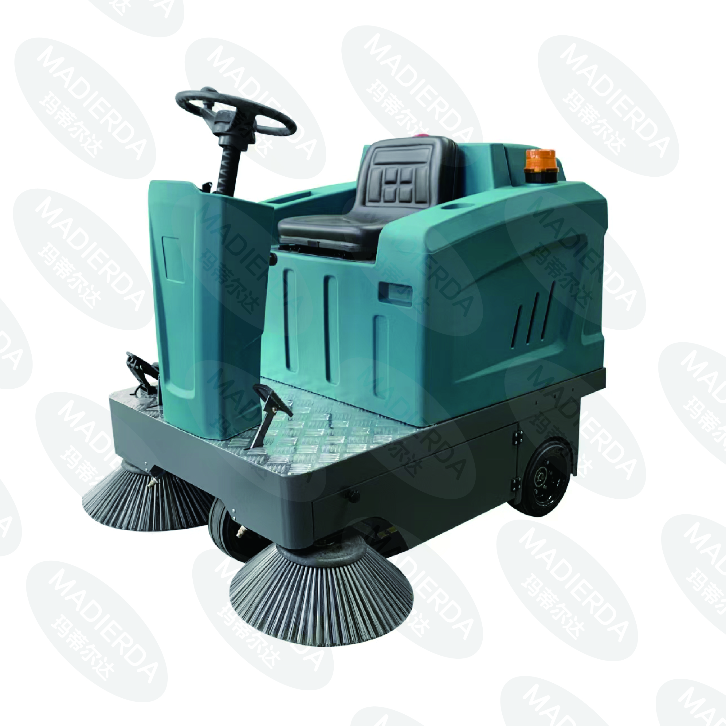 1. Dual-Motor Drive System: Our ride-on sweeper is equipped with a dual-motor drive system that provides exceptional power and traction. This system allows the sweeper to operate smoothly on various terrains, including slopes and uneven surfaces. The dual motors also ensure that the sweeping and suction functions can operate simultaneously at their optimal levels, enhancing the overall cleaning efficiency.